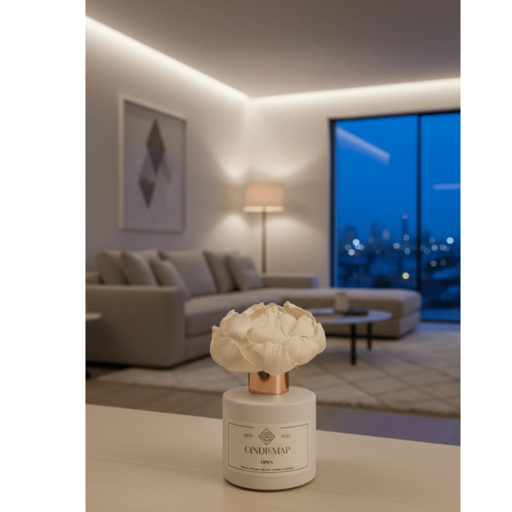 A virágdiffúzor természetes módon, folyamatosan adja le az illatot, miközben a dekoratív diffúzorvirág lassan magába szívja az esszenciát és virágként nyílik ki. Az Open illata így csendesen, egyenletesen van jelen az otthonban – mindig akkor, amikor szükség van rá.